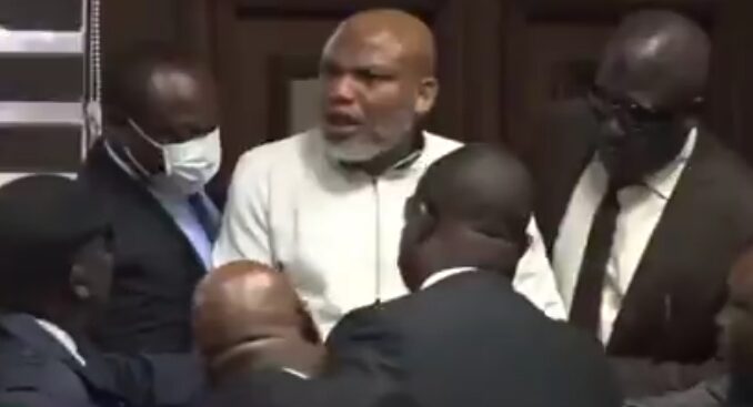 It was supposed to be the final judgement Day but Kanu insisted that he must address the court contrary to Judge Omotosho’s ruling.