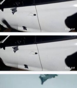 “I had left the office driving home with my two-door vehicle ,” Omoyele recounted. “When I got to Kobo, some armed men suddenly in a moving vehicle double side by side with my car and started firing. Their faces were covered, and before I could react, they opened fire on my vehicle. Bullets riddled the car. I didn’t stop. I kept driving through the hail of gunfire. I was hit, but I managed to escape.”