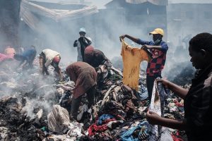 They may end up burning in landfills near Nairobi, exposing informal waste pickers to toxic fumes. Tonnes of textiles are also swept into waterways, eventually breaking down into microfibres ingested by aquatic animals.