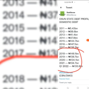 READ ALSO: Osun is Indebted to the Tune of N407.32 Billion under Oyetola – GOVERNOR ADELEKE ALLEGES