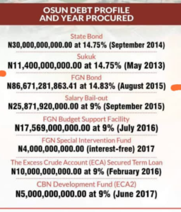 Oyebamiji in his analysis as the Commissioner of Finance in charge of the finances of the state gave all amounts of loans and the dates all the loans were procured.