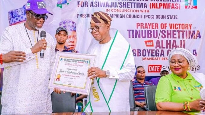 IT was a celebration galore on Wednesday, August 2, 2023 at the Secretariat of the ILERI-OLUWA Next Level Progressive Movement (INLPM), Osogbo, Osun State when President Bola Ahmed Tinubu released the last batch of his Ministerial Nominees which includes the name of former Governor of Osun State, Adegboyega Oyetola.
