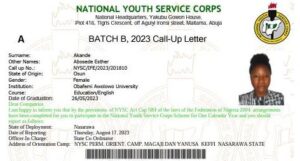 A National Youth Service Corps member, Miss Akande Abosede Esther, with Call-up No.: NYSC/IFE/2023/201810 (Batch B stream 2), has been kidnapped in the Federal Capital Territory, Abuja.