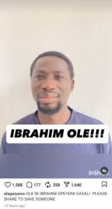 Crying for help, Alaga Abisola explained that even Ibrahim’s family claim not to know his whereabouts. She begged Nigerians who can help her locate him to reach out.