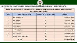 New Capital Projects In 2023 Supplementary Budget Across the Six Geopolitical Zones