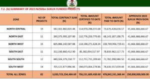Summary of 2023 N250 billion SUKUK Funded Projects across the six geopolitical zones