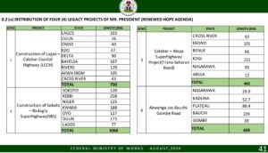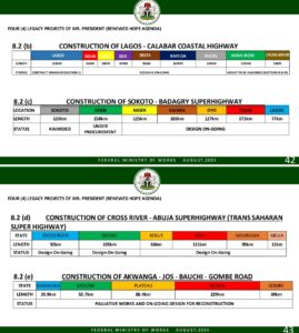For avoidance of doubts, I will highlight some ongoing projects in the North comprising of the North East, North West and the North Central as was released by the Honourable Minister of Works in his Press Briefings few weeks ago.