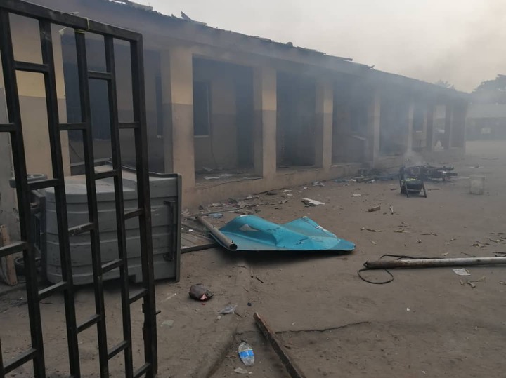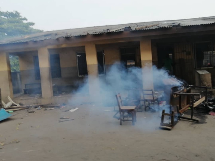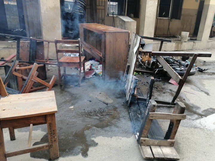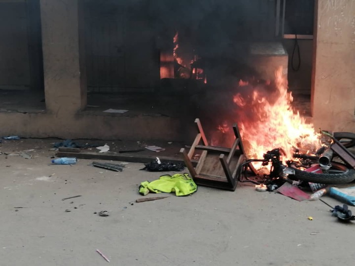 After gaining entrance into the compound which also houses a primary school building, the rampaging Hausa ‘Okada riders’ vandalized properties worth millions of naira, destroyed parked vehicles, took away the seized ‘Okadas’, carted away some sewing machines used for vocational training and set the office ablaze.