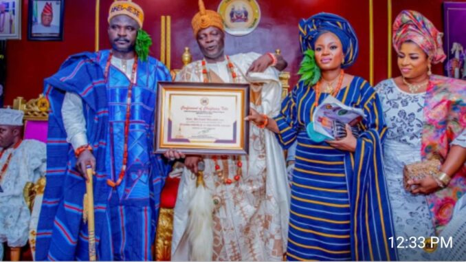 Mike Msuaan MON, Lady Bisbam, who is an astute business woman of repute and cultural icon, was duly honored with the prestigious title of Erelu Borokini, while Hon. Mike Msuaan MON, a Benue-born detribalised Nigerian, received the well-deserved distinguished title of Otunba Akeweje of the Owu Kuta kingdom.