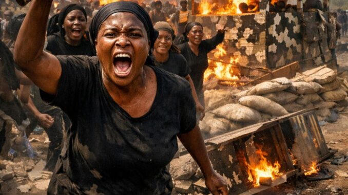As the protest intensified, some of the women reportedly moved toward a military checkpoint in the area. In a dramatic turn of events, the structure was vandalized and eventually destroyed.