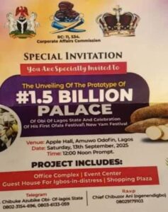 Their arrest was sequel to an Invite that went viral on Social Media few days ago inviting guest for the launching of One Billion Five Hundred Million Naira ultra modern Palace of Obi of Lagos scheduled to hold on Saturday, September 13, 2025 at Amuwo-Odofin, Lagos.