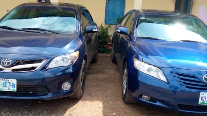 According to the Osun State Commissioner of Police, CP Kehinde Longe, the Chassis numbers of the two cars valued at N12,465,700 have been changed at the point of the arrest.