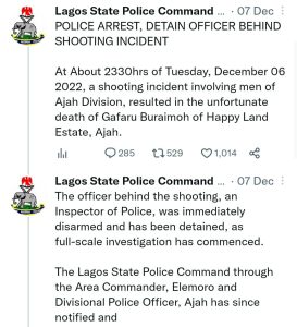 The Spokesperson of the Lagos state police command, SP Benjamin Hundeyin, has released the photo of Inspector Imeh Johnson, the officer who allegedly shot dead a civilian, Gafaru Buraimoh, in the Ajah area of Lagos state on December 6, 2022.