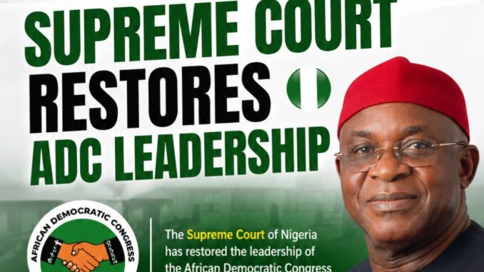 Supreme Court restores ADC leadership – Nigeria’s Supreme Court has restored the leadership of the African Democratic Congress (ADC) under former Senate President David Mark, ending a major chapter in the party’s leadership crisis.