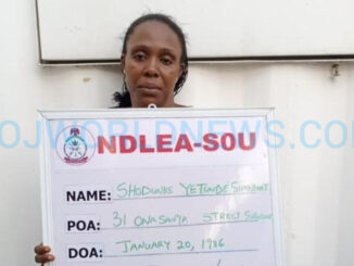 Operatives of the NDLEA arrestes woman 39-year-old in Lagos after a major cocaine seizure. The suspect, Shodunke Yetunde Simbiat, allegedly stored illicit drugs inside her [..https://www.sojworldnews.com/?customize_changeset_uuid=c0da71e4-1b42-4d5d-927a-1ccd29ca1dbc.]