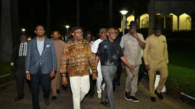 President Bola Tinubu on Thursday met with Governor Siminalayi Fubara of Rivers State, Minister of the Federal Capital Territory Nyesom Wike, Speaker of the Rivers State House of Assembly Martins Amaewhule, and other members of the state assembly in a bid to end the lingering political crisis in the state.
