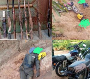 Again, on 17 July 2023, acting on credible intelligence, troops embarked on a fighting patrol to a bandits hideouts in Doka, Chikun Local Government of Kaduna State. During the operation, troops recoverd 7 Dane guns, 4 Cutlasses and 4 leg chains. Troops destroyed the camp and proceeded to clear Maguzawa, Parker and Akote villages all in Chikun and Igabi Local Government Area of Kaduna State.