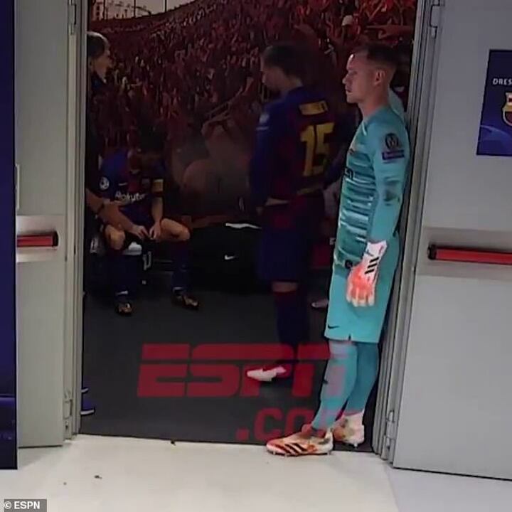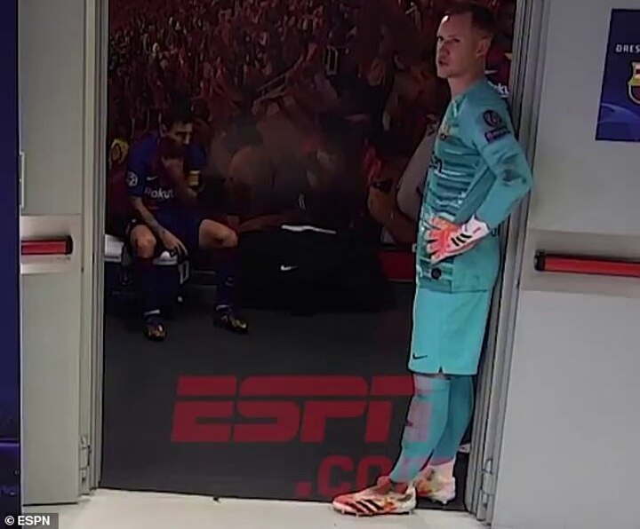 Footage has emerged from inside the LaLiga giants’ dressing room which shows Messi appearing visibly deflated and sitting down with his shoulders slumped during the half-time break.