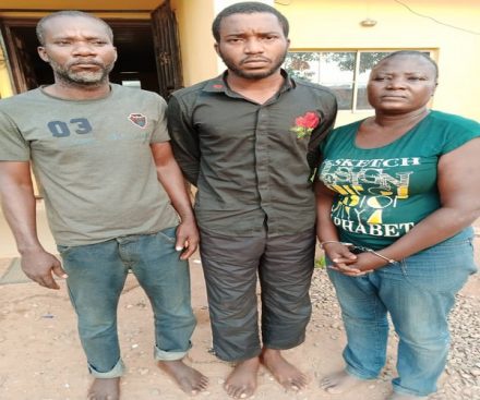 Also arrested alongside the duo was the mother of the man, simply identified as Mrs Adeeko.