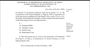 INSTRUMENT OF PRESIDENTIAL PREROGATIVE OF MERCY (COMMUTATION OF DEATH SENTENCE TO LIFE IMPRISONMENT), 2025
