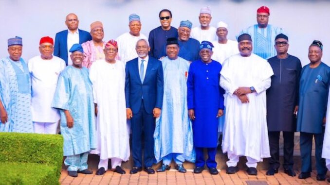 Other governors at the meeting with President Tinubu were Niyi Adebayo, Ekiti State, Sen. Orji Uzo Kalu, Abia State, Sen. Sam Egwu, Ebonyi State, Adamu Muazu, Bauchi State, Donald Duke, Cross River State, James Ibori, Delta State, Obong Victor Attah, Akwa Ibom State, Chimaroke Nnamani, Enugu State, Saminu Turaki, Jigawa State, Sen. Aleiro Adamu, Olusegun Osoba, Ogun State, Adebisi Akande, Osun State, Sen. Joshua Dariye, Plateau State, Attahiru Bafarawa, Sokoto State, Ahmad Sani Yarima, Zamfara State and Rev. Jolly Nyame, Taraba State.